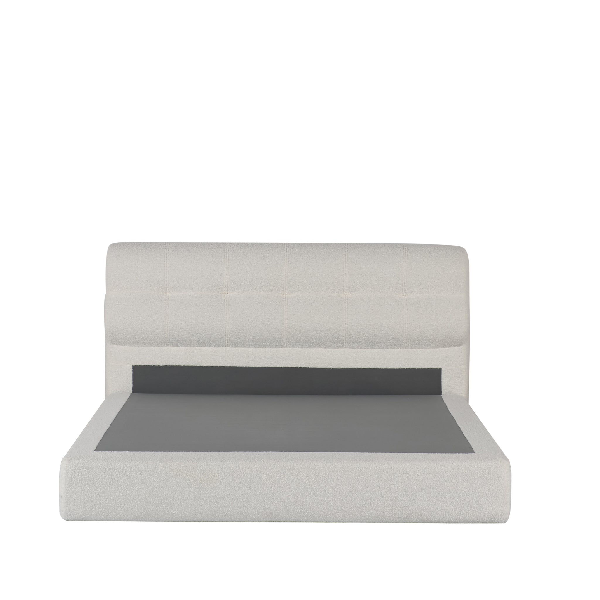 سرير باللون الكريمي الفاتح بتصميم عصري مميز، مثالي لغرف النوم الحديثة بفضل قاعدة قوية وخشب عالي الجودة ومساند رأس مريحة أثناء النوم ولتعطي جمال ورونق مختلف لغرفتك.