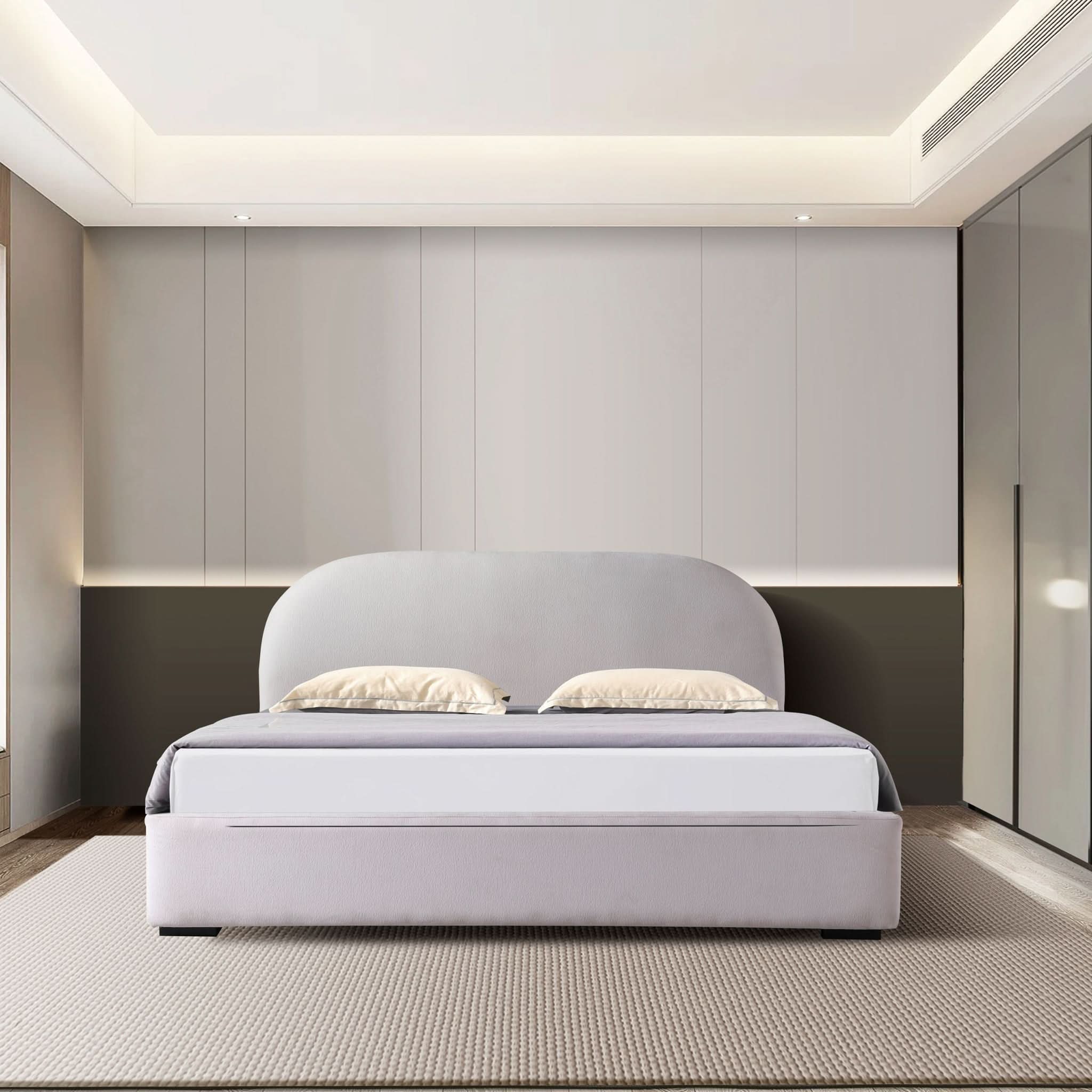 سرير كريم يجمع بين التصميم العصري والمريح ليمنحك تجربة نوم مثالية. يتميز بلونه الكريمي الأنيق الذي يضيف لمسة من الفخامة والهدوء إلى غرفتك.