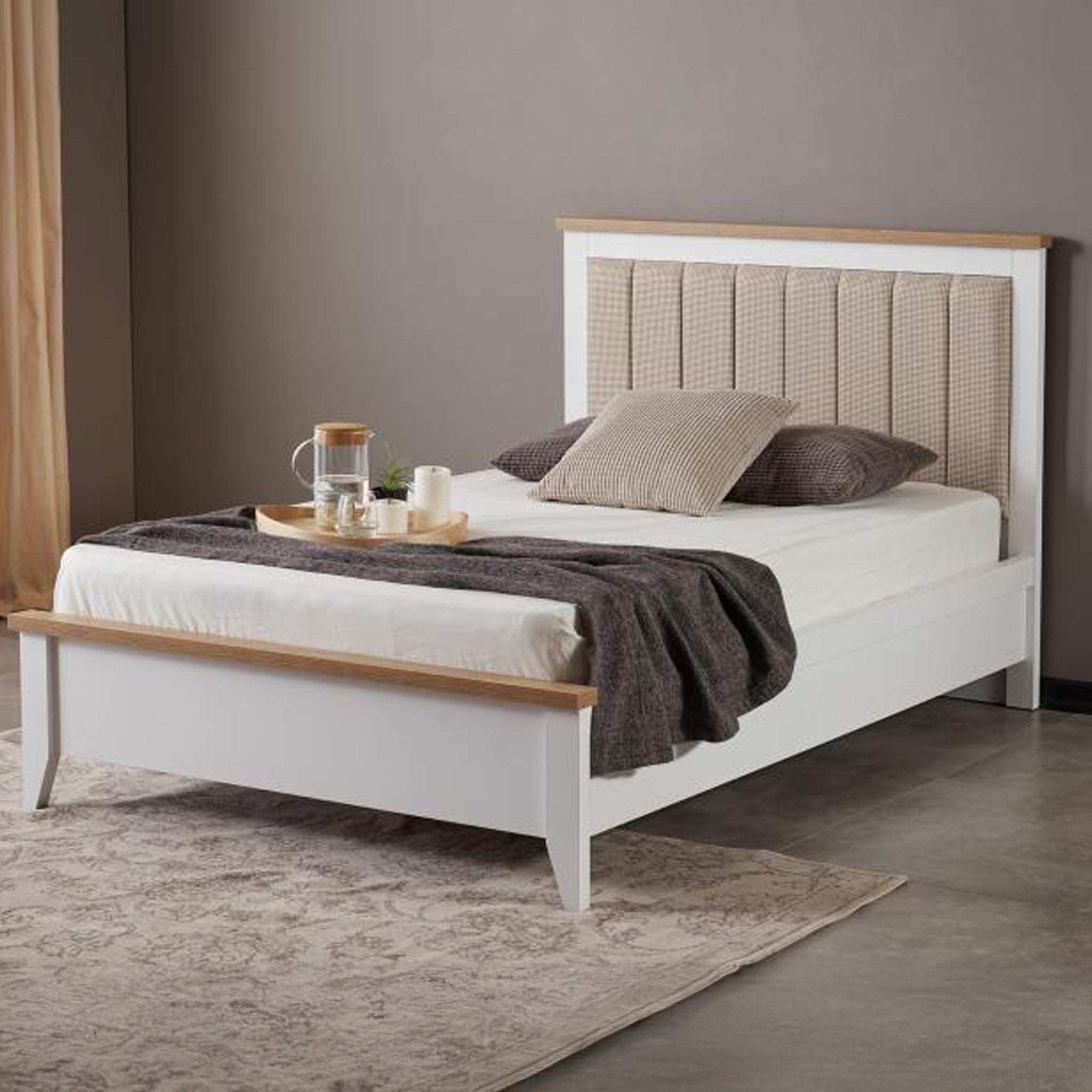 يجمع هذا السرير بين اللون الأبيض النقي والخشب الطبيعي، مما يمنحك إحساساً بالراحة والسكينة. تصميمه العصري يناسب جميع أنواع الديكورات الداخلية.
