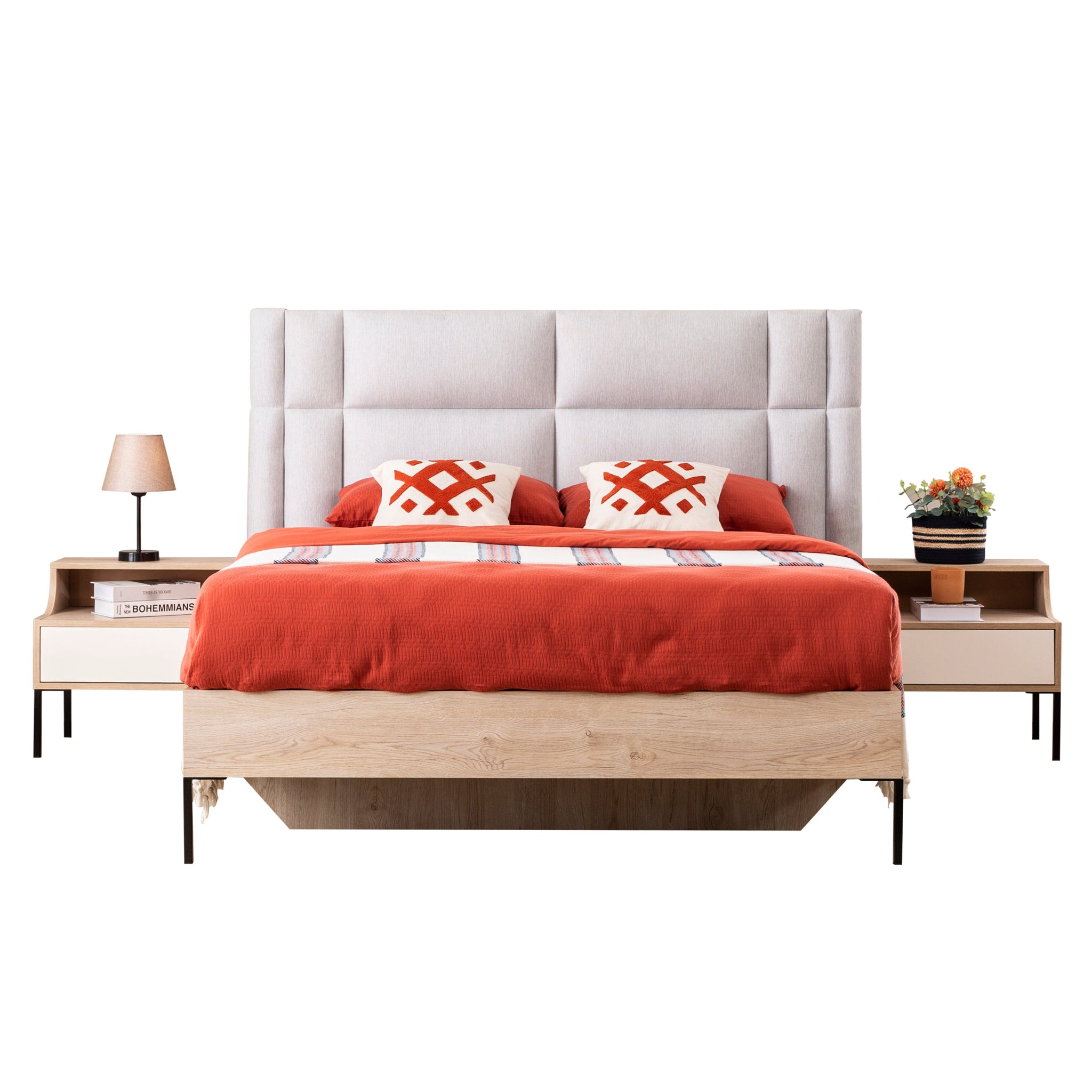 سرير مزدوج الراحة والفخامة في تصميم واحد استمتع بنوم هانئ وأنيق مع سرير مزدوج يتميز بتصميمه العصري والهادئ الذي يناسب جميع أنماط الديكور الداخلي. مصنوع من مواد عالية الجودة لضمان الراحة والمتانة طوال الليل.