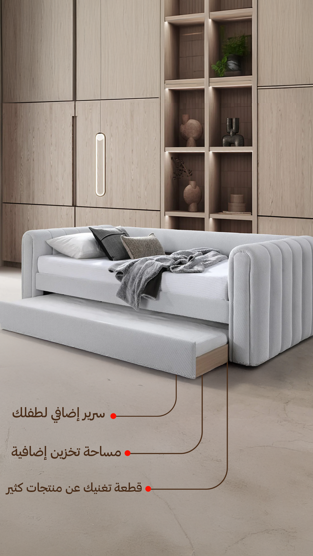 بالتأكيد، السرير مزوّد بسرير إضافي يمكن سحبه بسهولة ليكون مناسبًا للأطفال أو الضيوف.