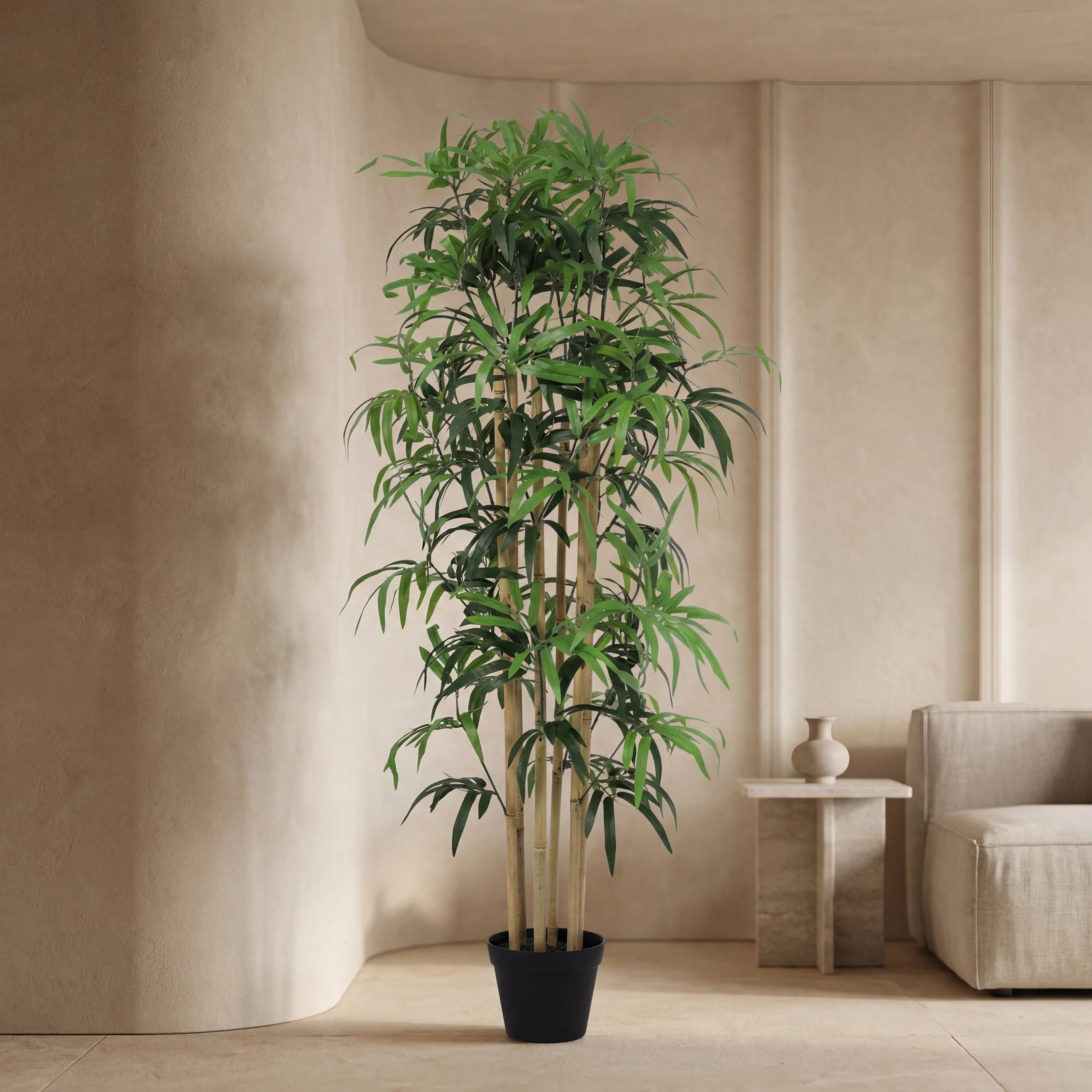 نبتة صناعية بتصميم عصري مستوحى من العناصر الطبيعية، تضيف لمسة هادئة وأنيقة للمكان دون الحاجة إلى عناية مستمرة. صُنعت من خامات متينة تشمل البلاستيك عالي الجودة مع قماش بوليستر، ومدعّمة بهيكل داخلي من السلك الحديدي يوفّر ثباتًا جيدًا وإمكانية تنسيق الأغصان بشكل مرن. كما تم استخدام الخيزران لإضفاء مظهر طبيعي يوازن بين البساطة والأناقة.