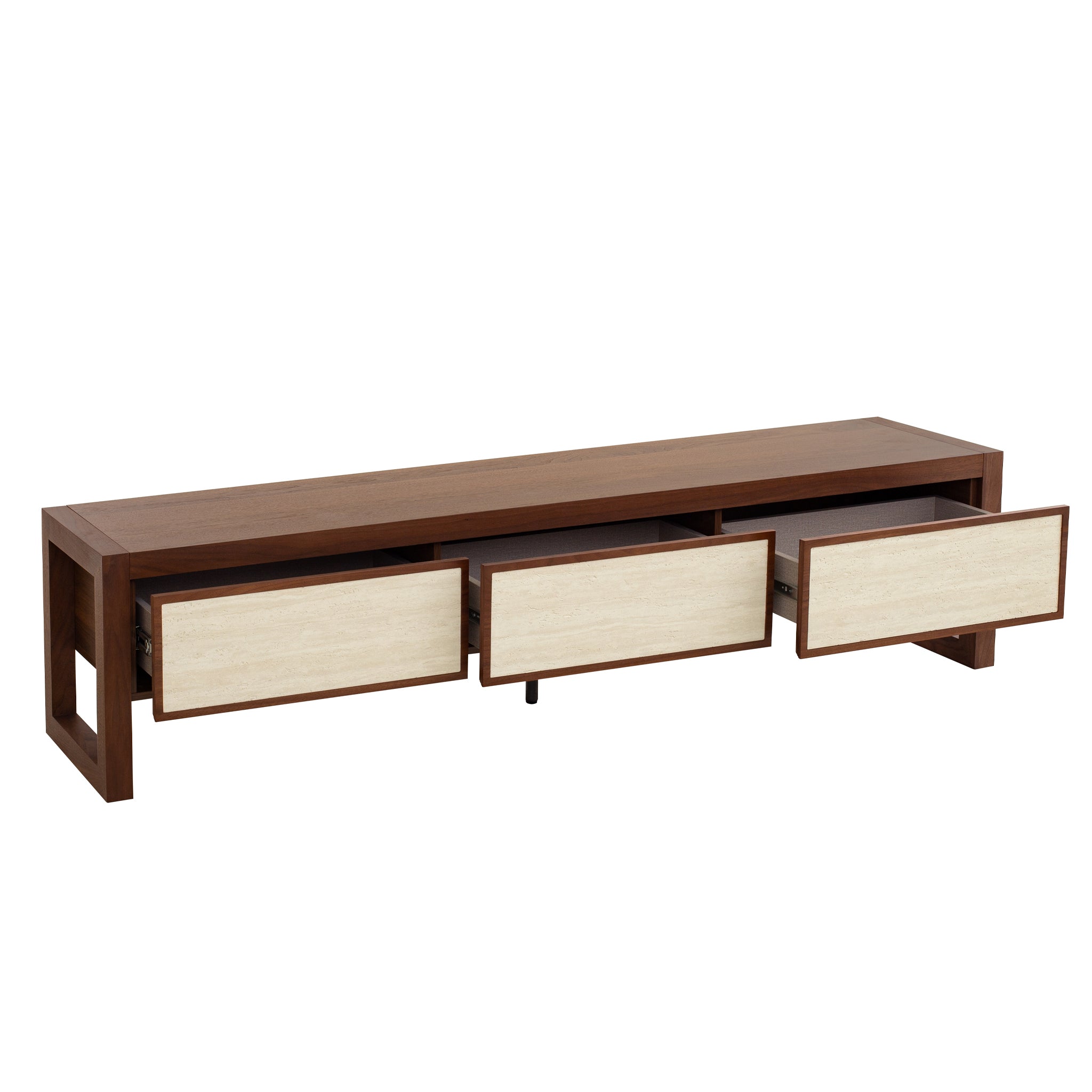 طاولة تلفزيون أنيقة تجمع بين الأناقة والعملية في تصميم متوازن وفخم.
