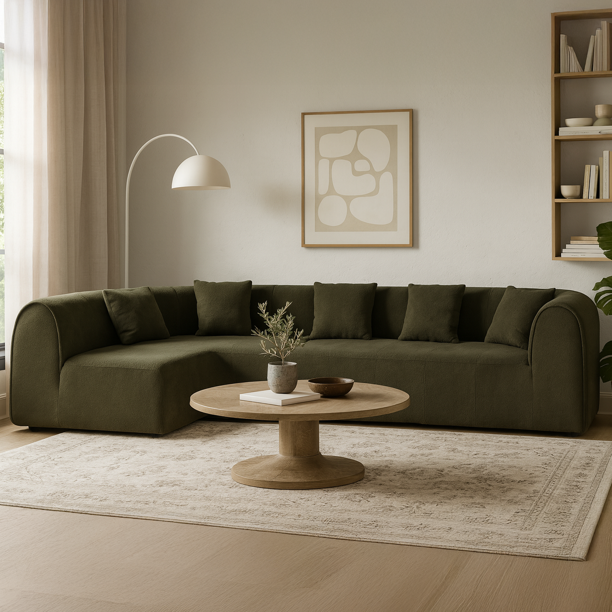 كنب زاوية فايورا مضغوط باللون الزيتي غامق - يمين طلب مسبق