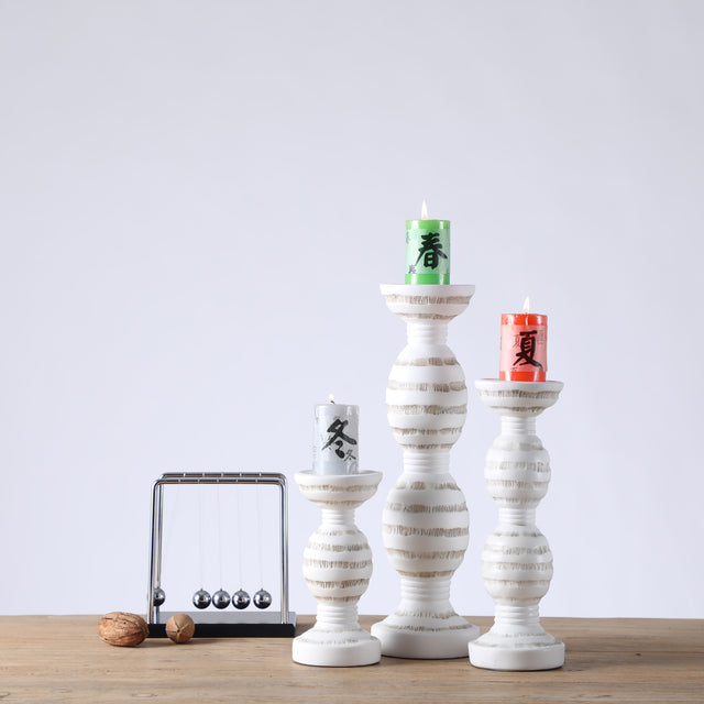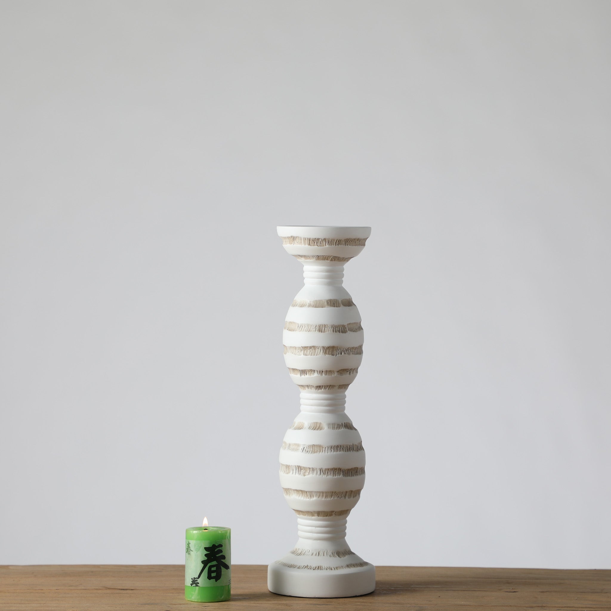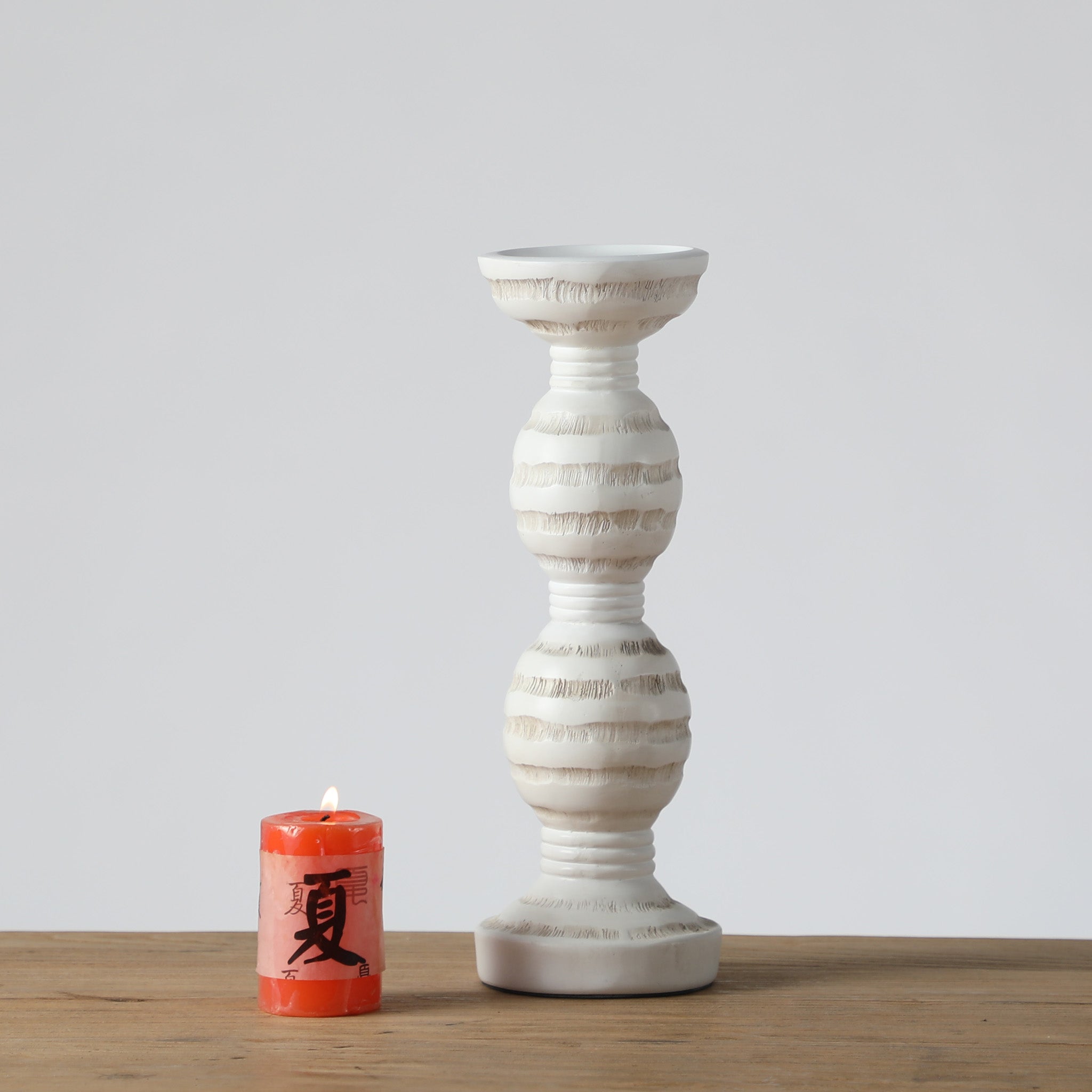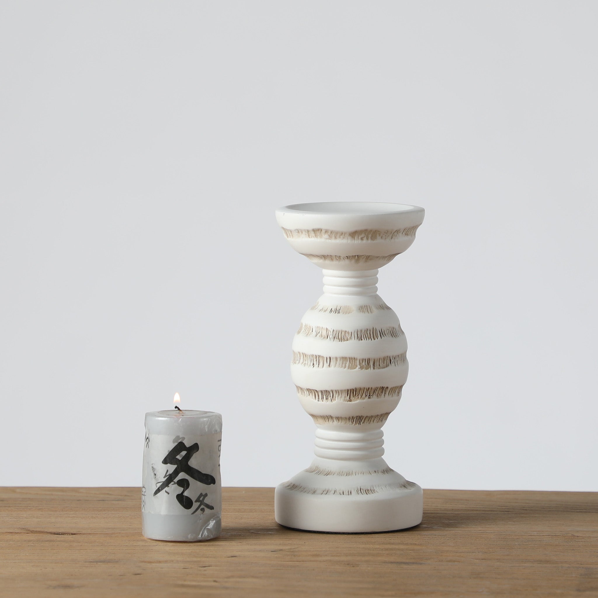 يأتي حامل الشموع هذا بتصميم أنيق باللون الأبيض يضيف لمسة هادئة ومضيئة إلى طاولات الطعام أو الكونسول أو زوايا الجلوس. صُنع من مادة البولي ريزين المتينة التي تمنحه ثباتًا جيدًا وجودة تدوم مع الاستخدام، مع شكل متوازن يسهل تنسيقه مع الديكورات العصرية والكلاسيكية.