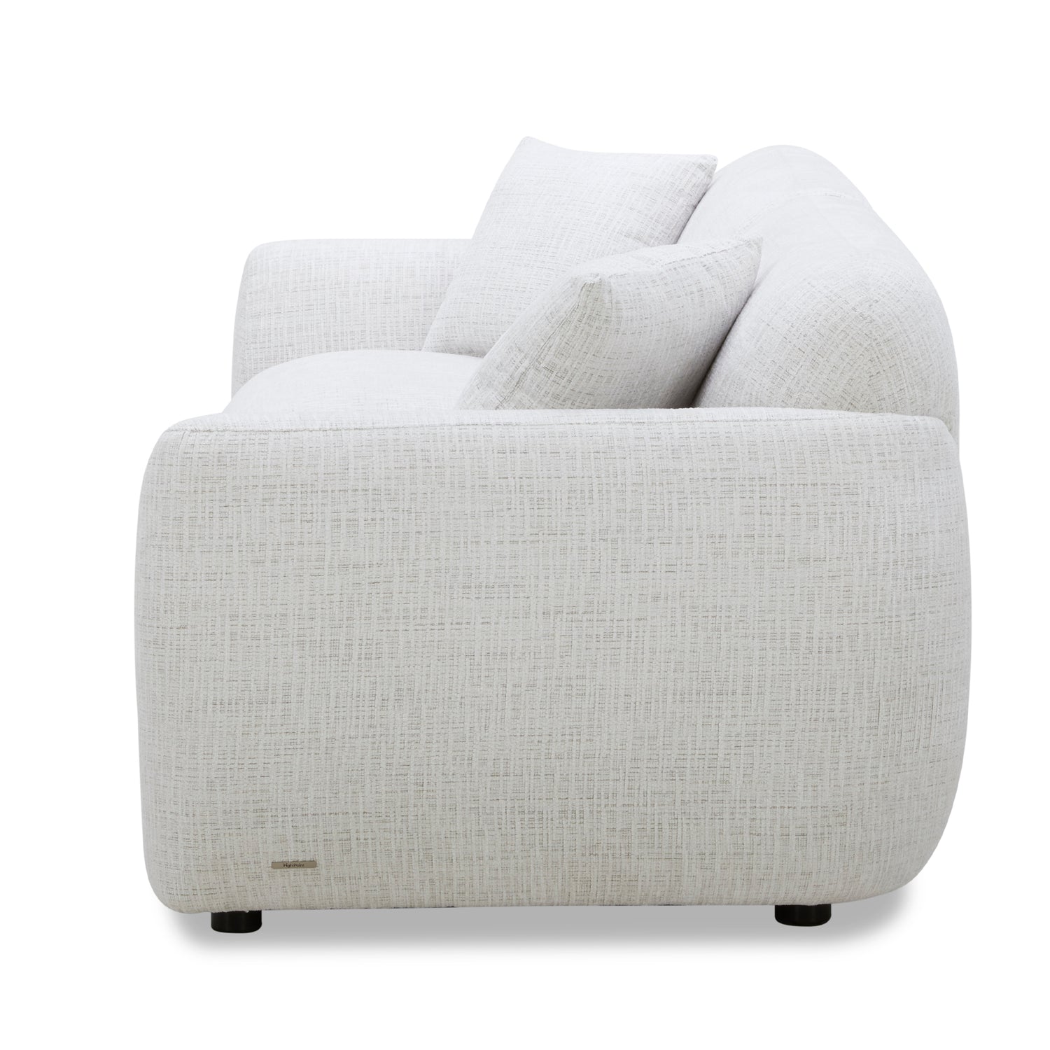 كنبة ريفان الثلاثية هي القطعة الأبرز في المجموعة، مصممة لتكون مركز الاستقبال والراحة في غرفة المعيشة. حجمها الواسع يوفر مساحة مثالية للعائلة والضيوف، بينما قماش البوكليه الفاخر يضيف إحساساً بالدفء والفخامة يرفع من مستوى ديكور الصالة.