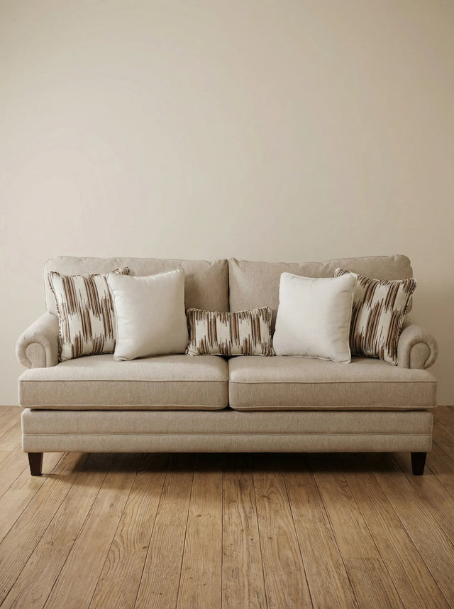 كنب ثلاثي بتصميم متوازن يوفر مساحة جلوس مريحة مع مظهر عصري يناسب مختلف أنماط الديكور. تم تنجيد الكنب بقماش شانيل عالي الجودة يتميز بنعومته ومظهره الأنيق الذي يضيف إحساسًا بالدفء للمكان. يُعد خيارًا مناسبًا لغرف المعيشة متوسطة المساحة.
