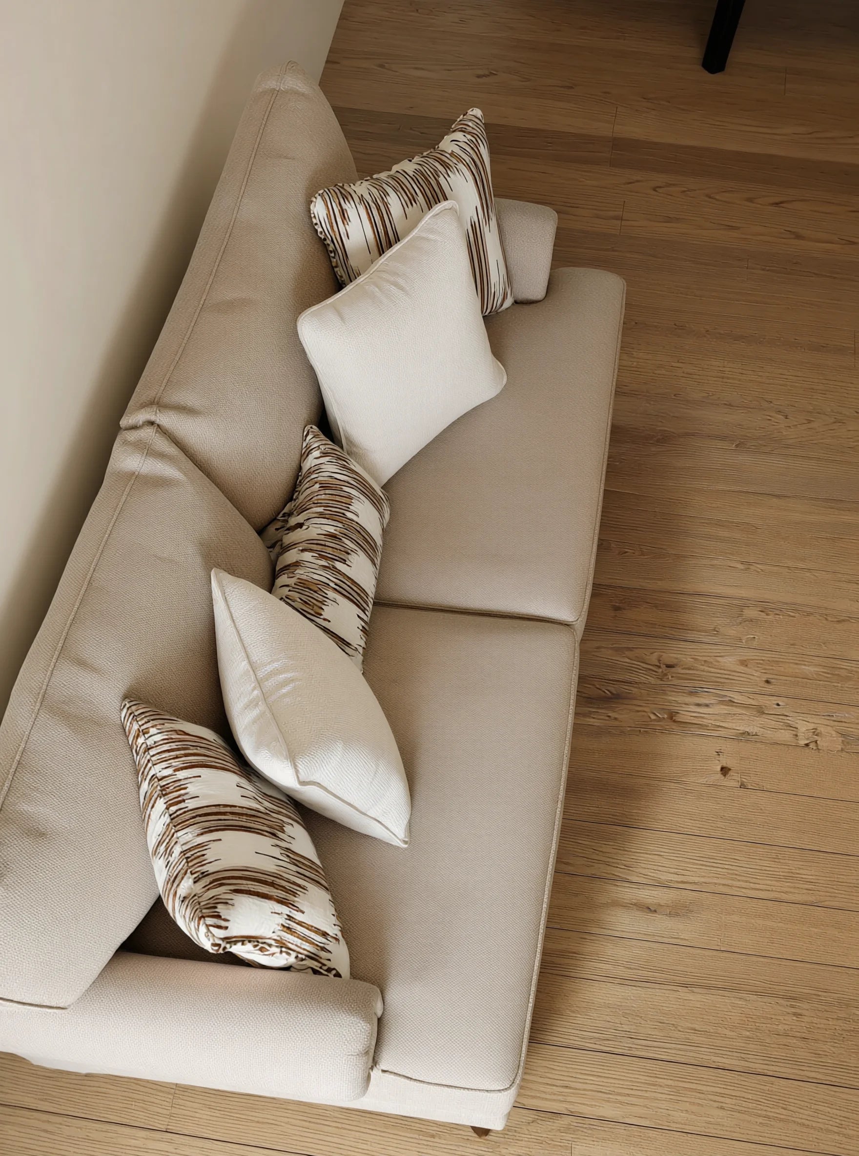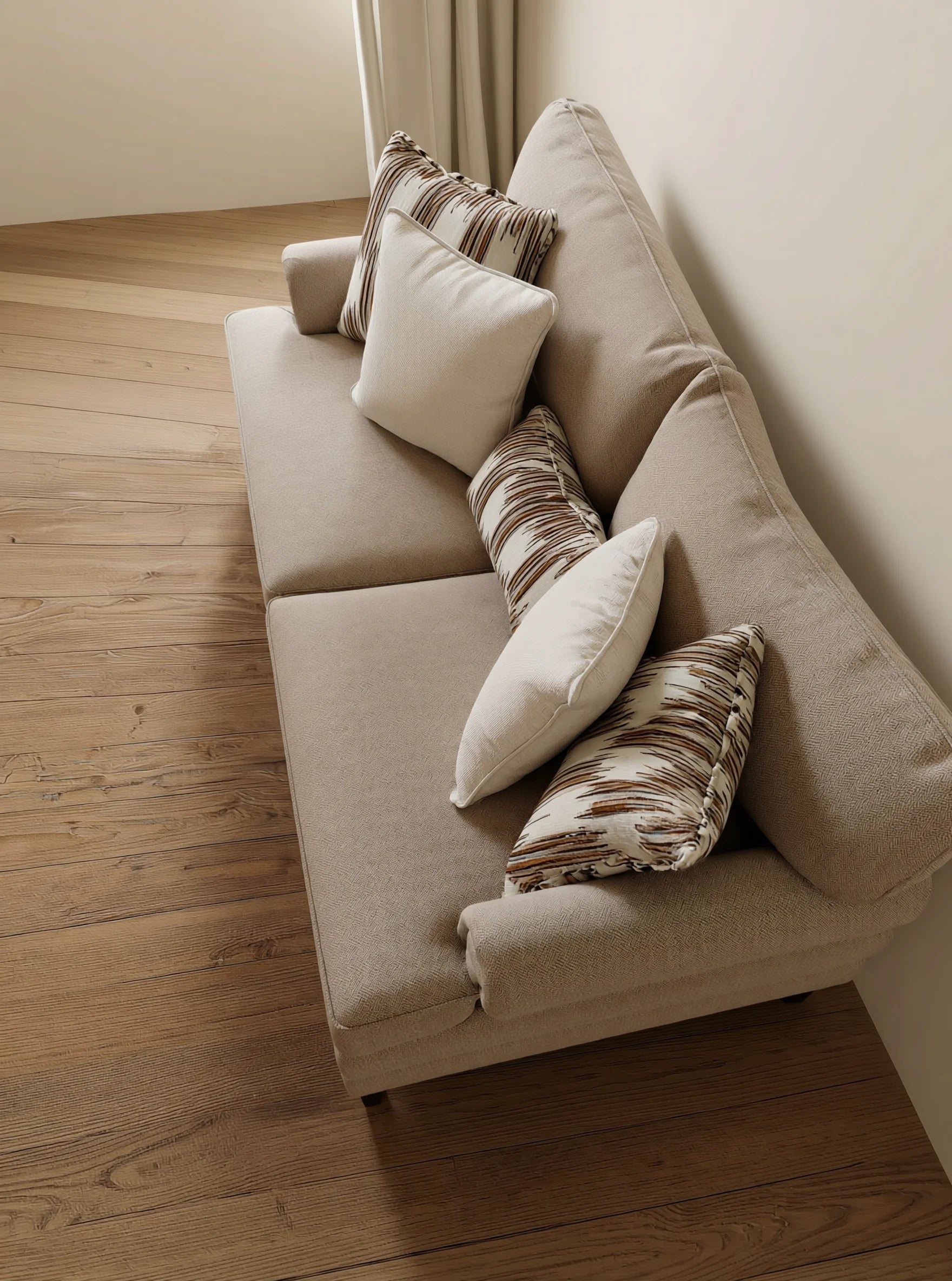 الهيكل الداخلي مصنوع من خشب الصنوبر الألماني لضمان المتانة والثبات أثناء الاستخدام اليومي. تم توزيع الحشوات بعناية لتوفير راحة مثالية ودعم جيد للظهر. كما تعزز الأرجل الخشبية من استقرار الكنب وتكمل تصميمه العصري. قطعة عملية تجمع بين الراحة والأناقة.