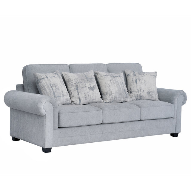 الكنب الثلاثي هو القطعة الأبرز في هذا الطقم الفاخر بتصميمه المتوازن وأناقته الرفيعة.