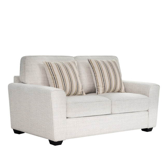 الكنبة الثنائية من ميسا تجمع بين الحجم المناسب والراحة الفائقة، لتكون الخيار المثالي للمساحات المتوسطة. توفر وسادتان إضافيتان دعماً وراحة أكبر، بينما يمنح القماش الفاخر مظهراً أنيقاً يضيف دفئاً على ديكور غرفة المعيشة.