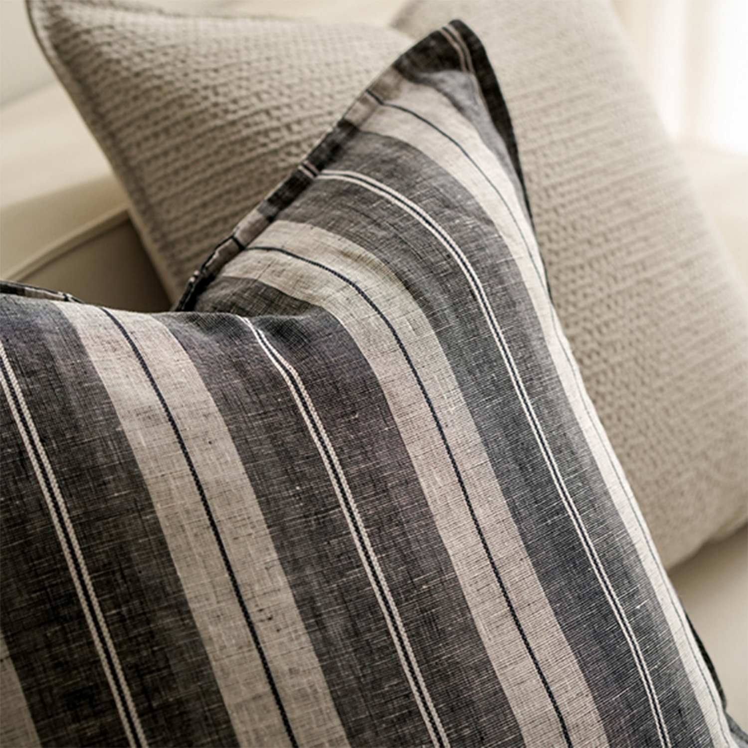 استمتع بتجربة استثنائية من الفخامة والراحة مع هذه الوسادة المذهلة. خامة 100% كتان تضفي عليها ملمسًا فاخرًا يضفي جاذبية راقية على المكان. تصميمها العصري يمنح الغرفة حضورًا لافتًا يدمج بين الراحة والفن. تضيف لمسة أنيقة على الأسرة والأرائك لتجعل المساحة أكثر دفئًا وذوقًا. تتناغم ألوانها وخامتها الفاخرة لتمنح الغرفة طابعًا راقيًا. قطعة مثالية لكل من يبحث عن التميز في تفاصيل ديكور منزله.