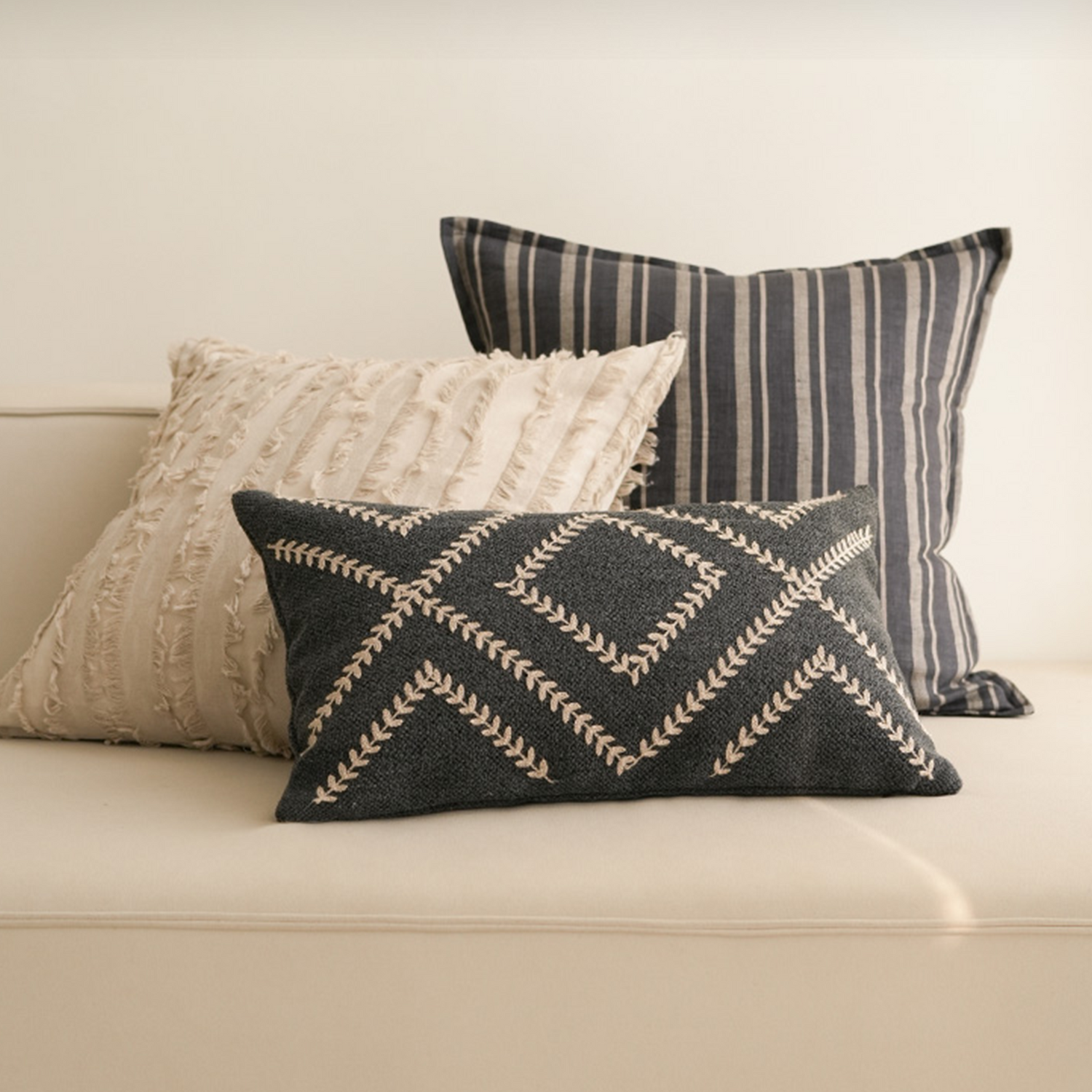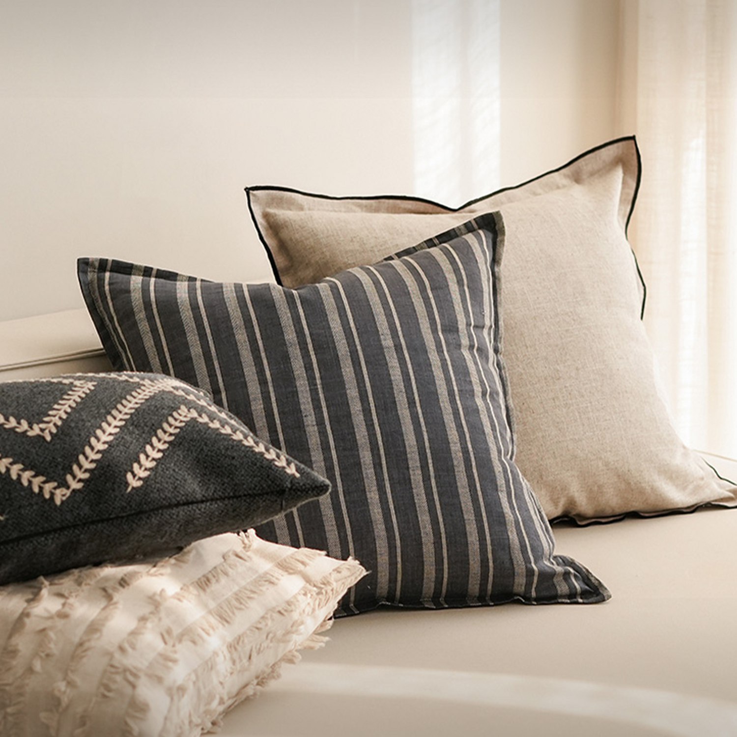 استمتع بتجربة استثنائية من الفخامة والراحة مع هذه الوسادة المذهلة. مع خامة 100% كتان تضفي عليها ملمسًا فاخرًا يضفي جاذبية راقية على المكان. تصميمها العصري يمنح الغرفة حضورًا لافتًا يدمج بين الراحة والفن.
