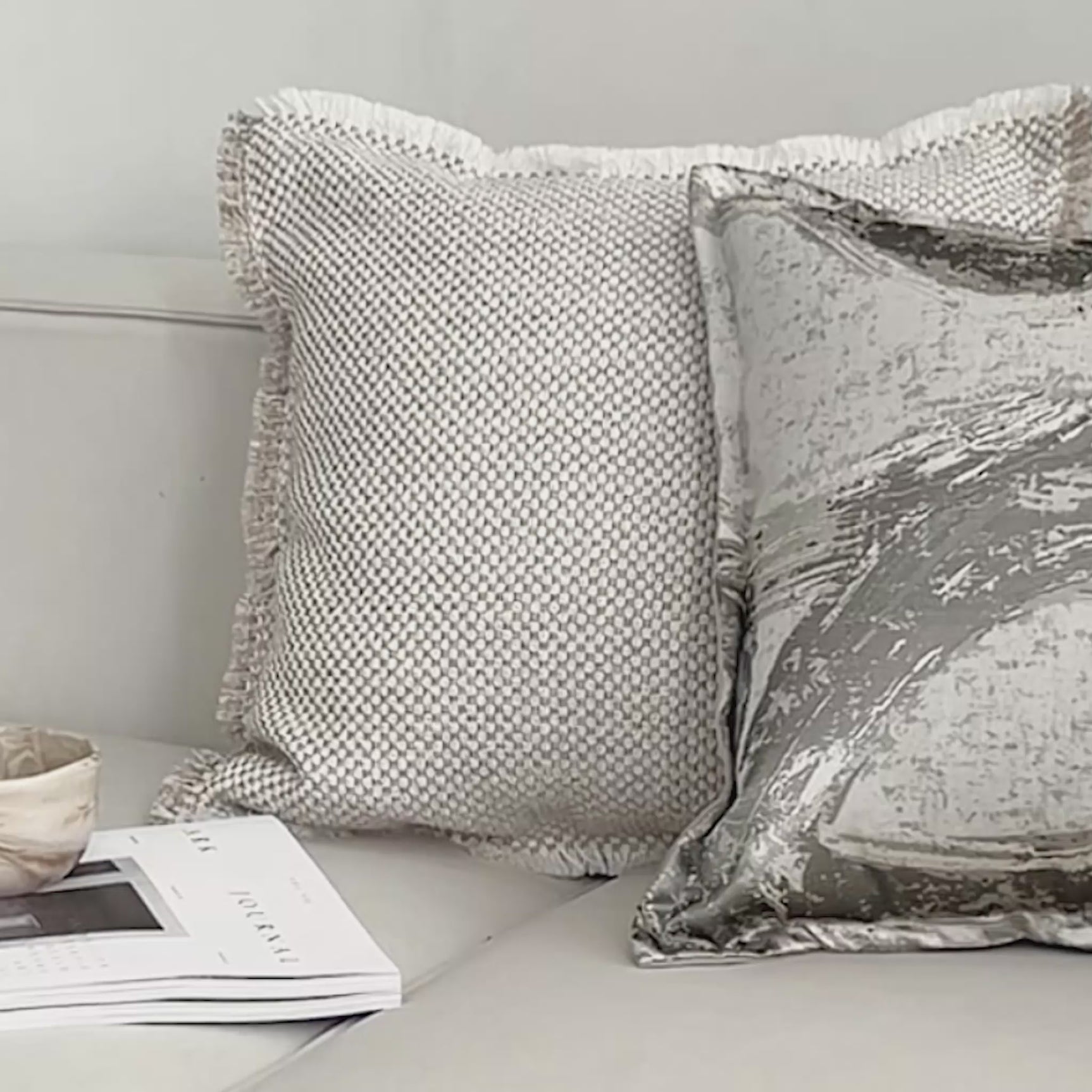 وسادة فاخرة مصنوعة من 100%بوليستر تضفي لمسة من الفخامة والرقي على أي مساحة. بتصميمها العصري وملمسها الفاخر، تعكس الذوق الرفيع لمن يبحث عن التميز في تفاصيل منزله. تضيف لمسة جمالية تكمّل الأثاث وتمنح الغرفة طابعًا أنيقًا ومريحًا. خامتها المميزة تمنحها نعومة تدوم ومظهرًا يعبّر عن الجودة العالية. تجمع بين التصميم الجذاب والمتانة لتكون قطعة أساسية في ديكورك اليومي. تعكس الفخامة الهادئة والراحة المطلقة التي تمنح المكان طابعًا فريدًا من نوعه.