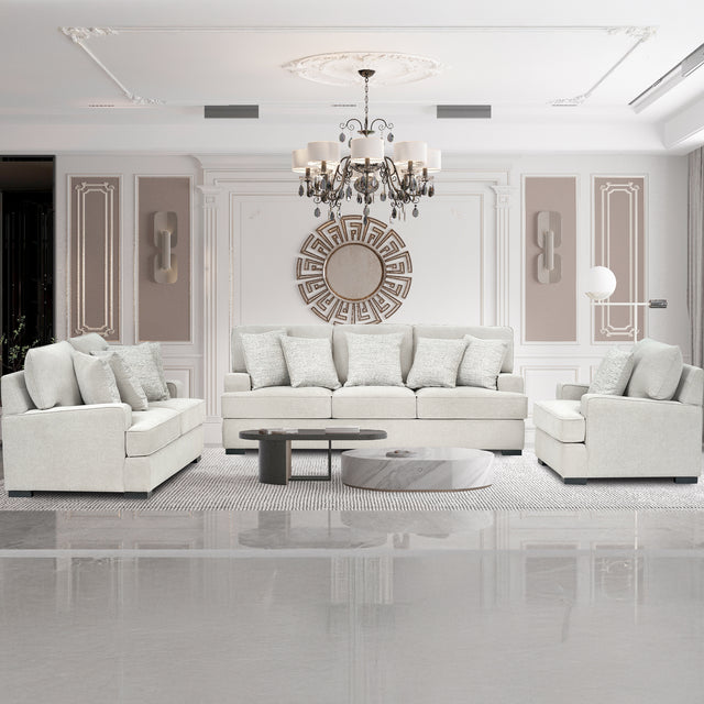 صُمم الطقم على هيكل متين من الخشب الصناعي المقوّى مع أرجل خشبية صلبة، مما يضمن لك متانة وثباتاً لسنوات طويلة. كما تأتي القطع مزودة بوسائد إضافية لتعزيز الراحة والدعم أثناء الجلوس. إنه الطقم المثالي لمن يبحث عن طقم كنب عائلي يجمع بين الأناقة المودرن والراحة العملية في اثاث الصالة أو غرفة المعيشة.