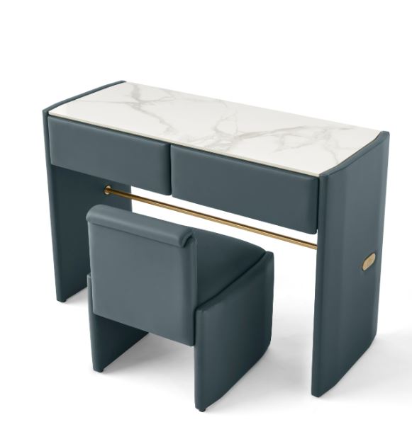 تتكون المجموعة من سرير أنيق مغطى بقماش عالي الجودة، و طاولة جانبية لتضفي لمسة عملية. التسريحة بتصميمها الفاخر تمنحك مساحة مثالية للعناية اليومية، وتكمل وحدة الأدراج المشهد العام لتضيف تنظيمًا وأناقة.