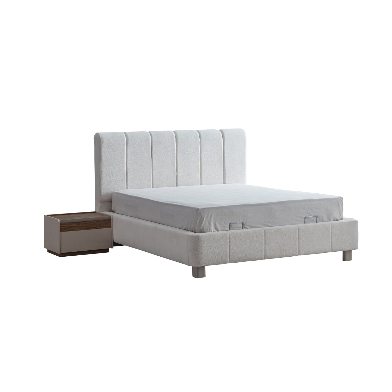 غرفة نوم عصرية بلمسة رائعة ولون بيج فاتح، مزودة بمساحة تخزين عملية أسفل السرير.. مع تغطية قماشية عالية الجودة لتعطي مظهرًا جذَابًا.. مصممة بعناية لتلبي احتياجك وتلائم ذائقتك.