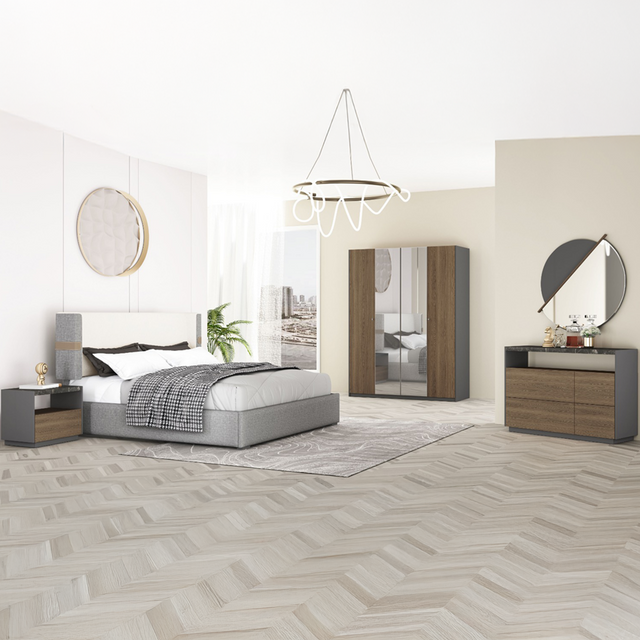 غرفة نوم سيلينا باللون الرمادي والخشبي طلب مسبق