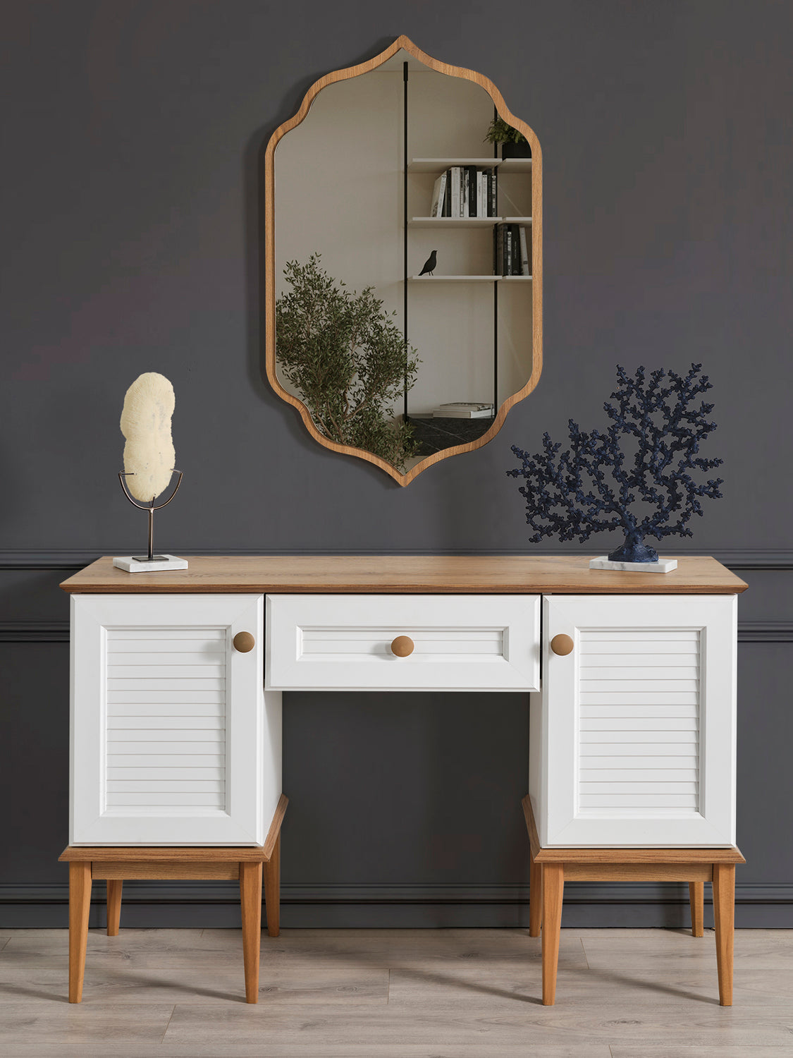 مع أثاث خشبي عالي الجودة يضفي لمسة دافئة، بينما التفاصيل المتقنة توفّر لك راحة تامة وأجواء هادئة.