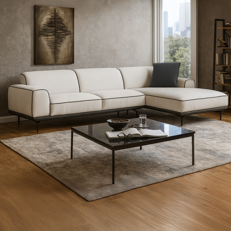 كنب ويدا زاوية باللون الكريمي الرمادي