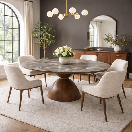 طاولة طعام لودريك باللون الأبيض والخشبي