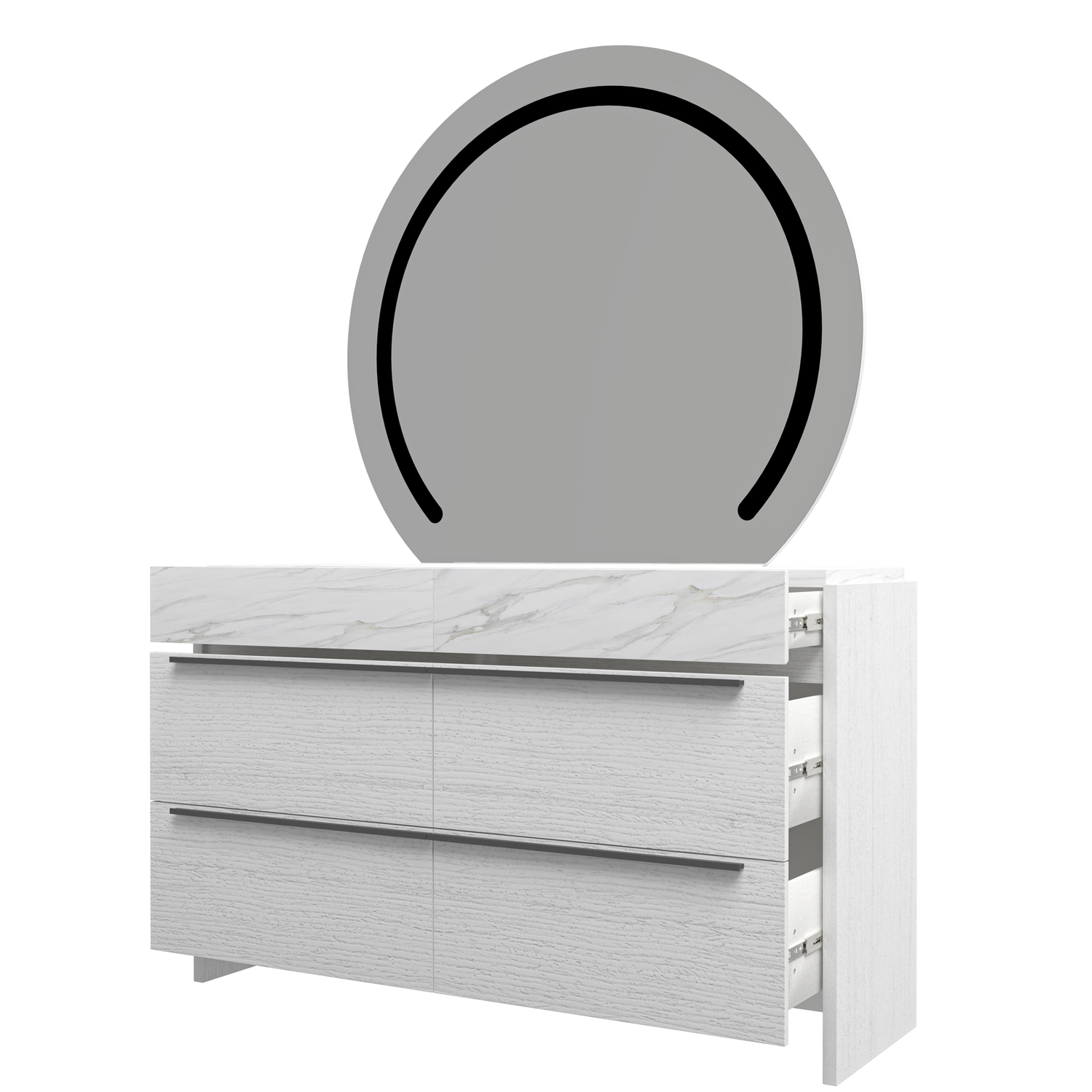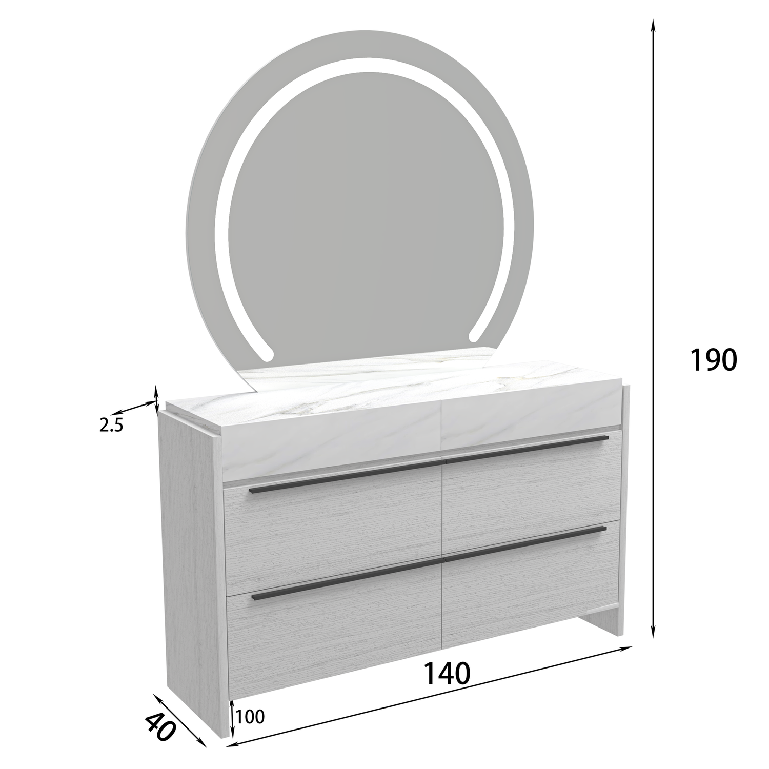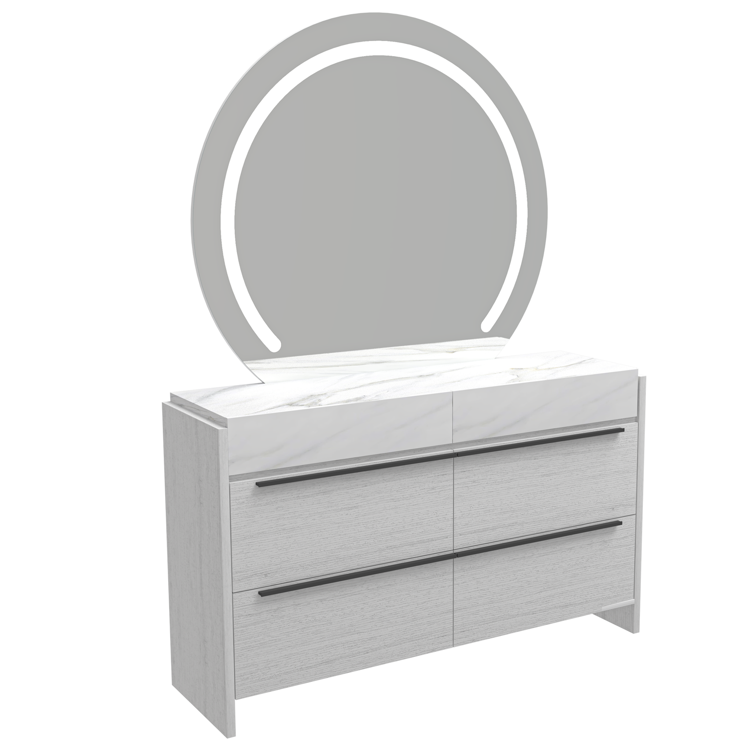 تسريحة أنيقة مزودة بمرآة كبيرة تجعلها قطعة عملية وجمالية في الوقت نفسه. تساعدك على ترتيب أغراضك اليومية وتعتبر خيارًا مثاليًا لمن يبحث عن تسريحة غرفة نوم تجمع بين العملية والأناقة، سواء كـ تسريحة كبيرة أو تسريحة بأدراج واسعة ضمن أثاث غرف نوم عصري.