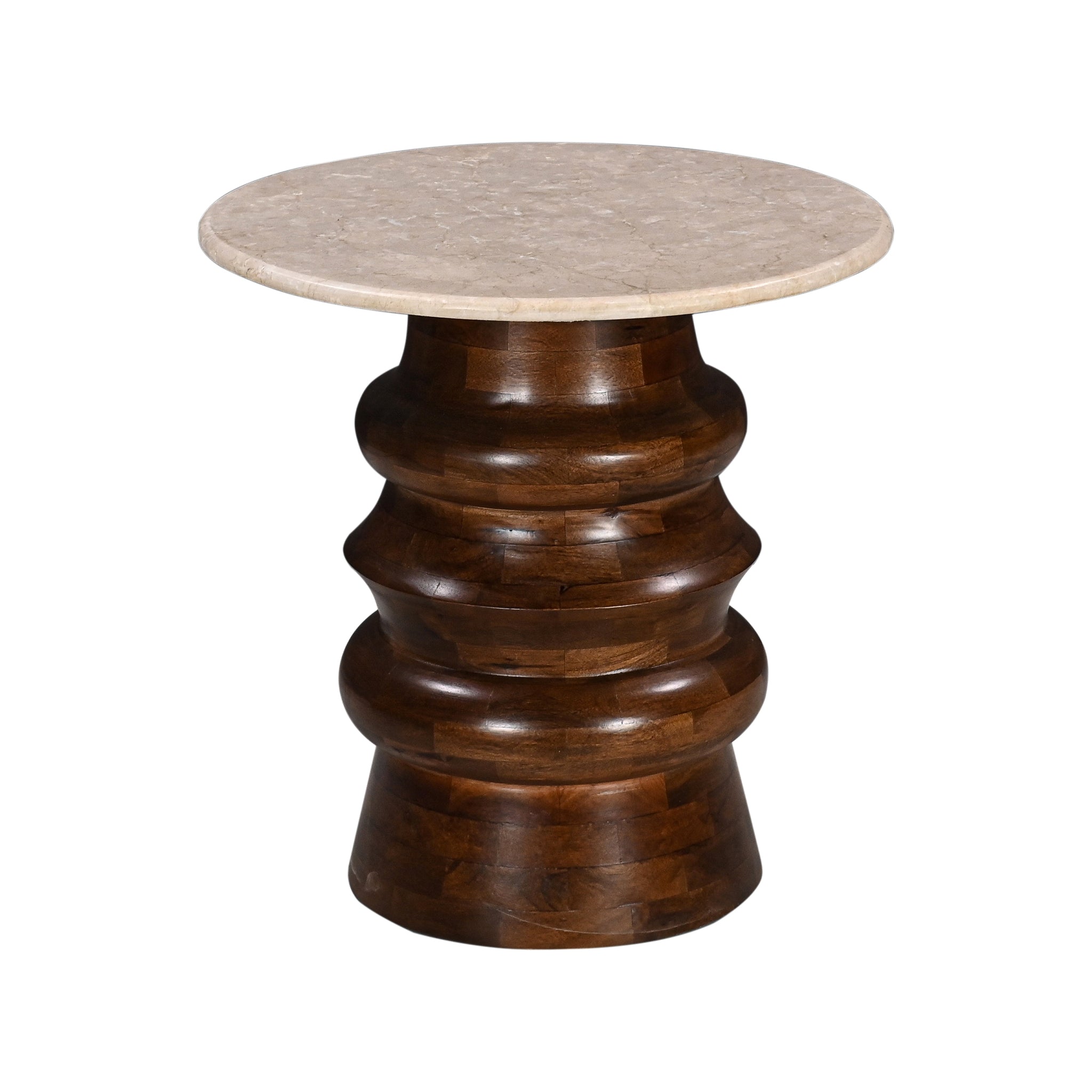 إبداع يجمع بين الحرفية العالية والجاذبية البصرية. طاولة وسطيه ذات سطح رخامي مصنوع من خشب المانجو مع أرجل خشبية متينة ليمنحك قوة وجمالاً في الاستخدام. تفاصيله تضيف لمسة من الفخامة وتجعله قطعة مثالية لديكور منزلك.