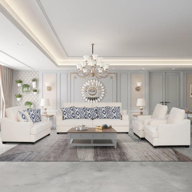 يأتي هذا الطقم بتصميم أمريكي حديث يجمع بين الراحة العملية واللمسة الجمالية الراقية، مما يجعله خيارًا مثاليًا لغرف الجلوس العصرية. يتميز الطقم بمقاعد واسعة ووسائد داعمة توفر تجربة جلوس مريحة طوال اليوم. كما يأتي بقماش عالي الجودة يسهل تنظيفه ويحافظ على مظهره لفترة طويلة.