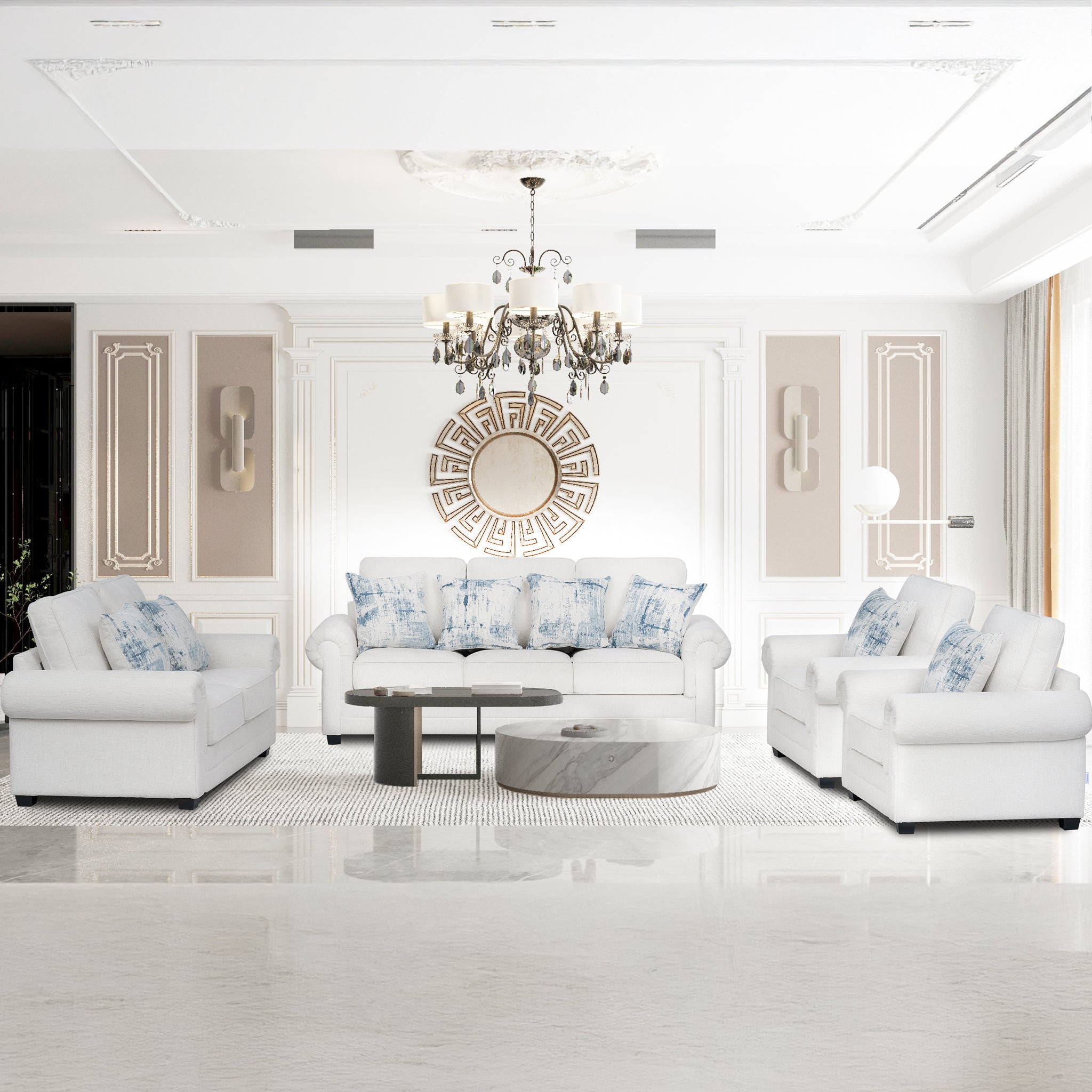 الطقم متوفر بعدة خيارات تشمل كرسي، كنبة ثنائية، وكنبة ثلاثية، مع وسائد إضافية مقاس 50×50 سم لتزيد من الراحة وتعزز جمال التصميم. إنه الخيار المثالي لـ غرف المعيشة واثاث الصالة، سواء كقطعة منفردة أو طقم كنب مودرن متكامل يناسب العائلات.