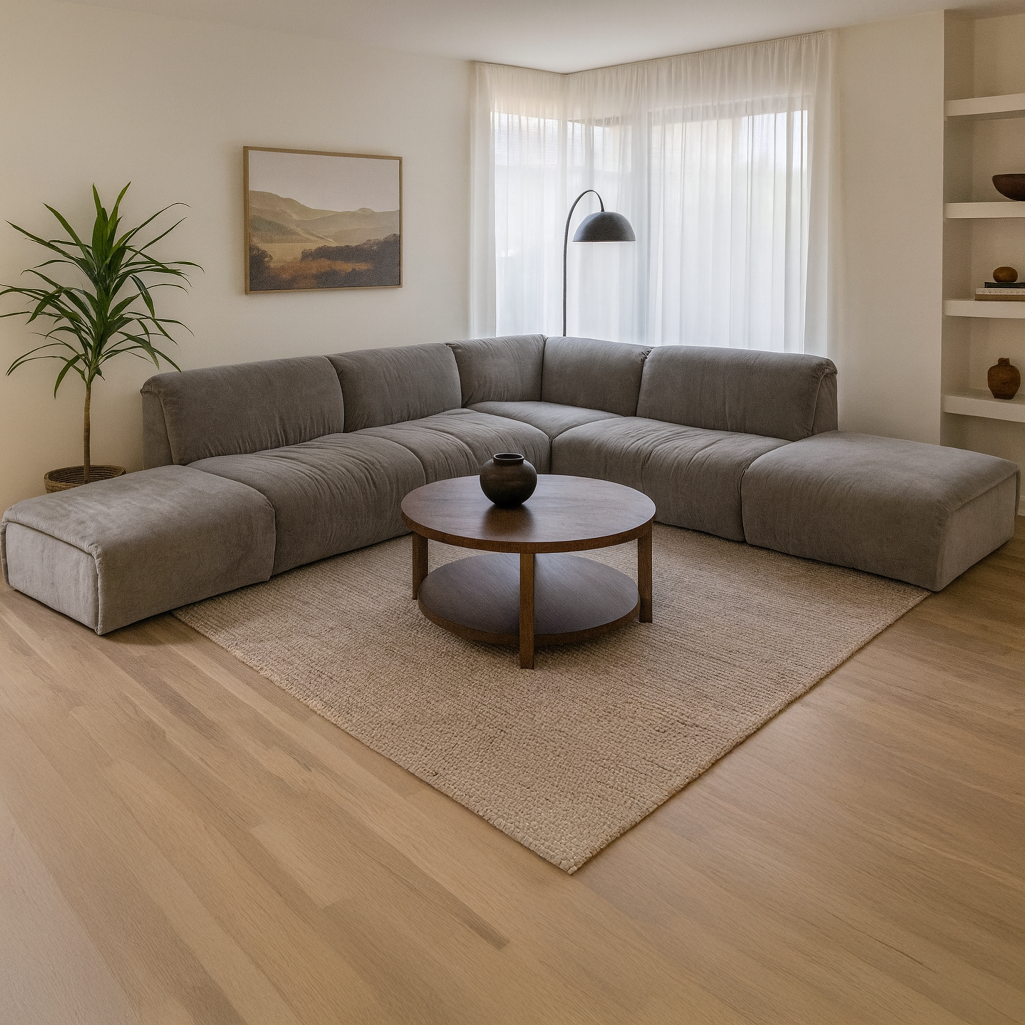 تتكوّن من قطع متعددة تشمل الزاوية، مقاعد مفردة بدون ذراع، وقطعة مسند، مما يتيح لك تشكيلها بحرية بحسب ذوقك واحتياجك.
