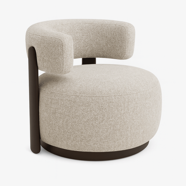 يأتي هذا الكرسي بتصميم عصري أنيق يجمع بين الراحة والذوق الرفيع، مع لون بني هادئ ينسجم بسهولة مع مختلف أنماط الديكور. يتميز بمقعد دائري واسع يمنح جلسة مريحة، إضافة إلى مسند علوي بتصميم مبطّن يدعم الظهر بشكل عملي. القماش المستخدم ناعم الملمس ومتين في الاستخدام اليومي، مما يجعله خيارًا مثاليًا لغرف المعيشة، زوايا القراءة أو غرف النوم. كما أن الأرجل بتشطيب أسود تضيف لمسة فخمة وتمنح ثباتًا عاليًا على مختلف الأسطح. قطعة تجمع بين الأناقة والراحة، وتضفي دفئًا ولمسة ترحيبية على أي مساحة.