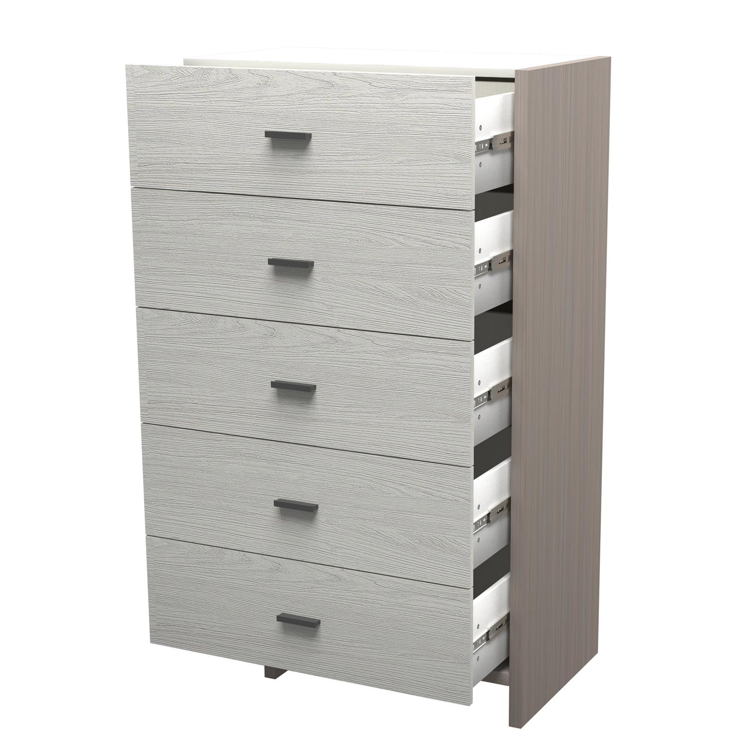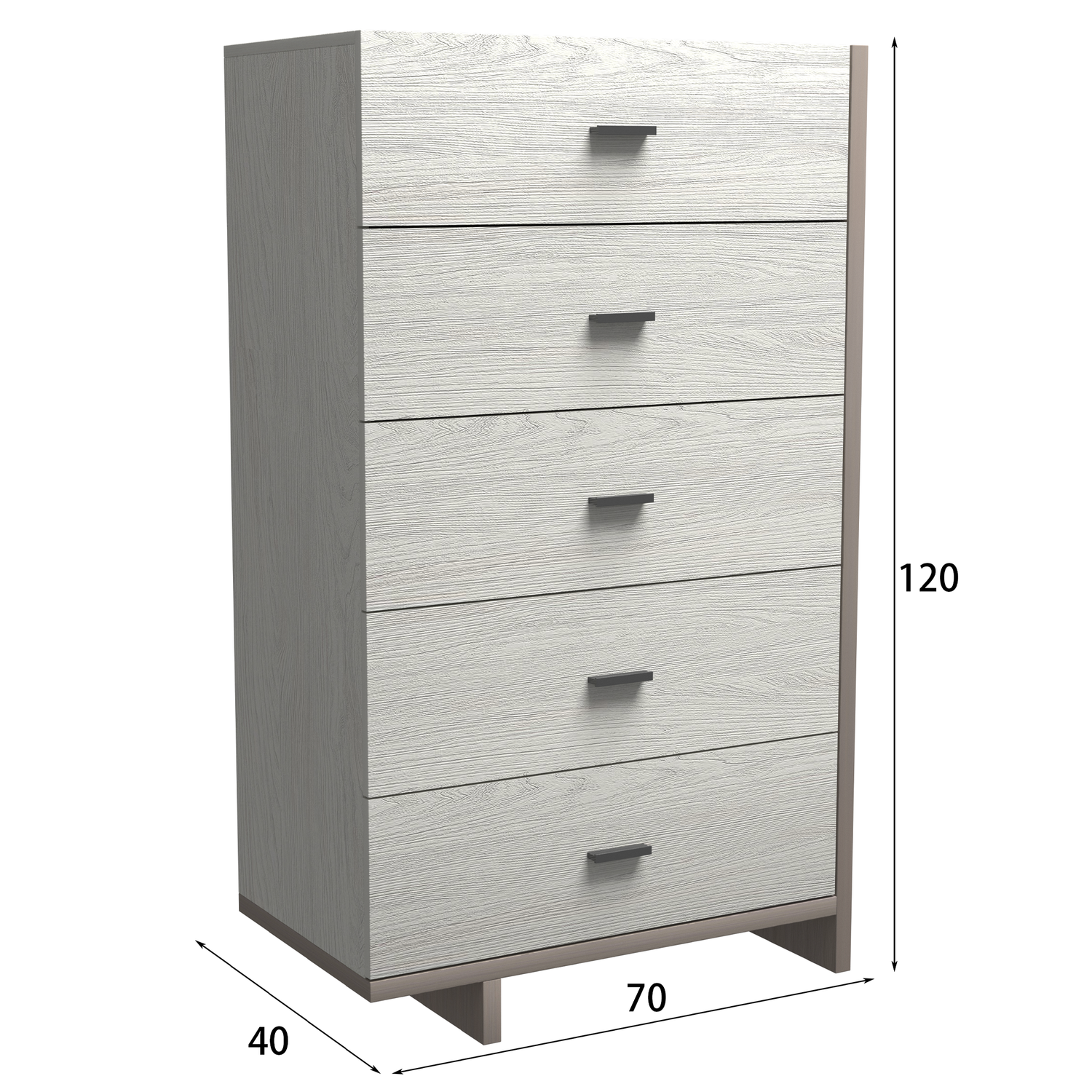 خزانة أدراج عصرية بجسم ميلامين ومقابض معدنية سوداء. مثالية للاستخدام كقطعة عملية وأنيقة لحفظ الملابس أو الإكسسوارات، وتضفي لمسة جمالية على غرف النوم المودرن.