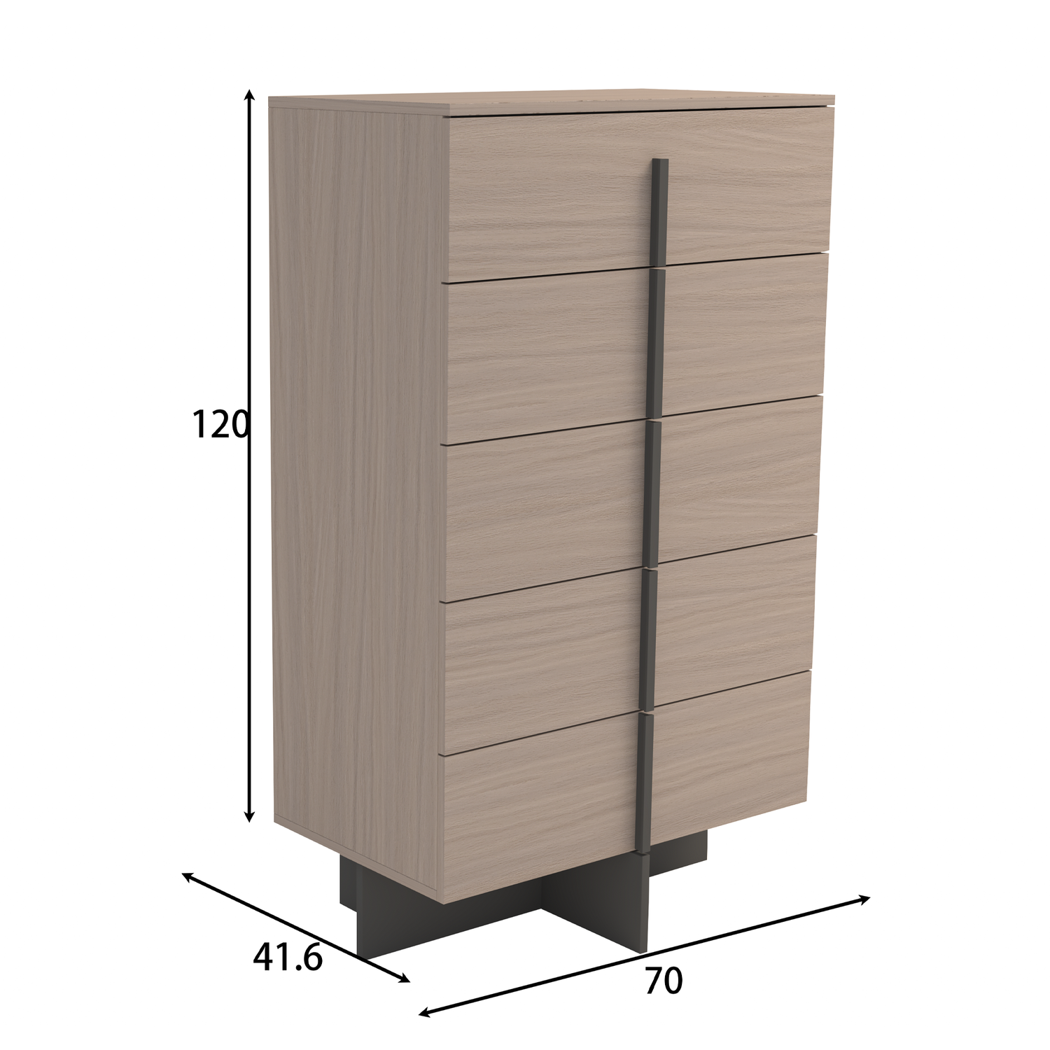 خزانة أدراج عصرية بجسم ميلامين ومقابض معدنية سوداء. مثالية للاستخدام كقطعة عملية وأنيقة لحفظ الملابس أو الإكسسوارات، وتضفي لمسة جمالية على غرف النوم المودرن.