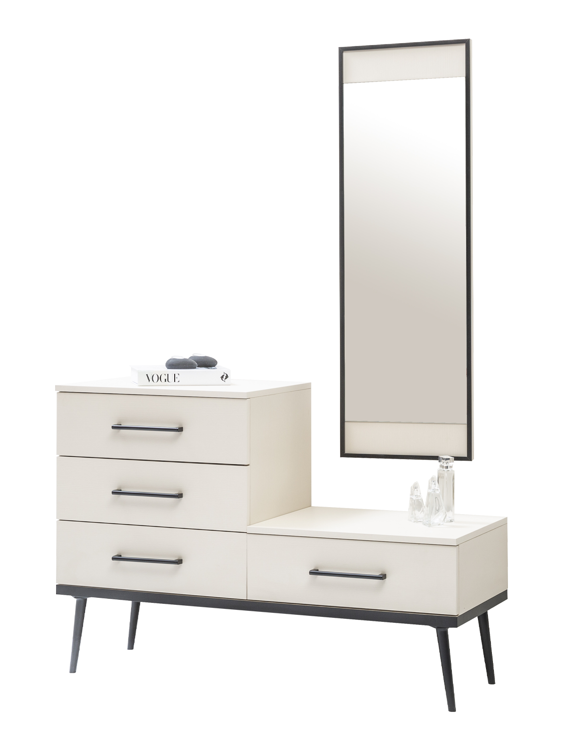 تسريحة مع مرايا كريم هي الاختيار المثالي لتكملة ديكور غرفة النوم. توفر لك مساحة كبيرة للتخزين مع مرايا واسعة لتجعل من كل صباح تجربة ممتعة.